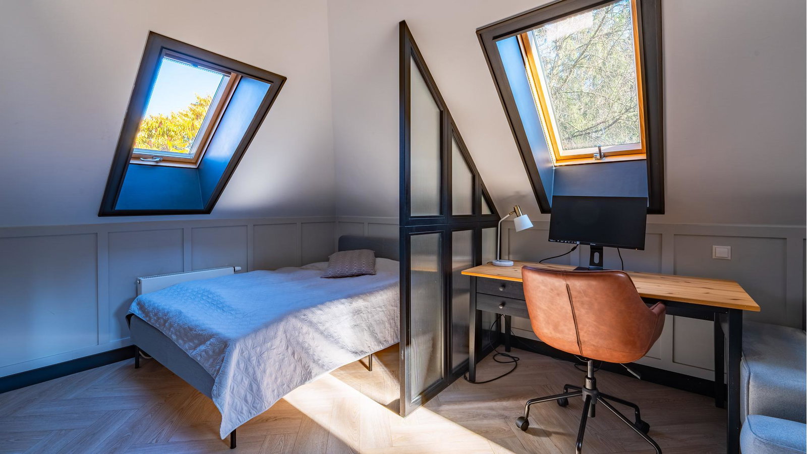 - Podłogi w pomieszczeniach: Parkiet