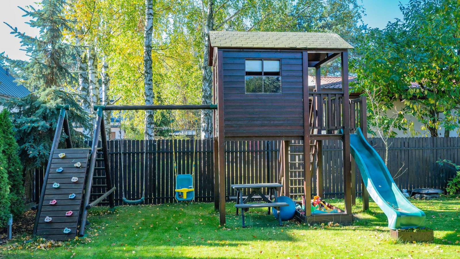 - W ogrodzie plac zabaw dla dzieci