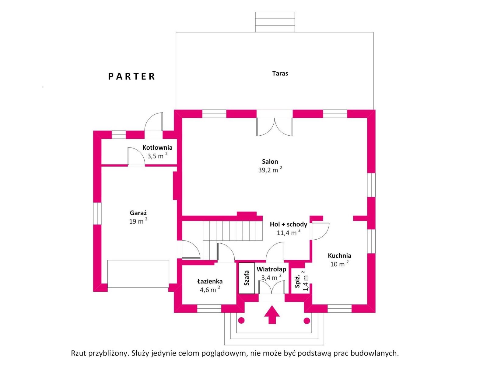 - Drzwi wejściowe: Drewniane