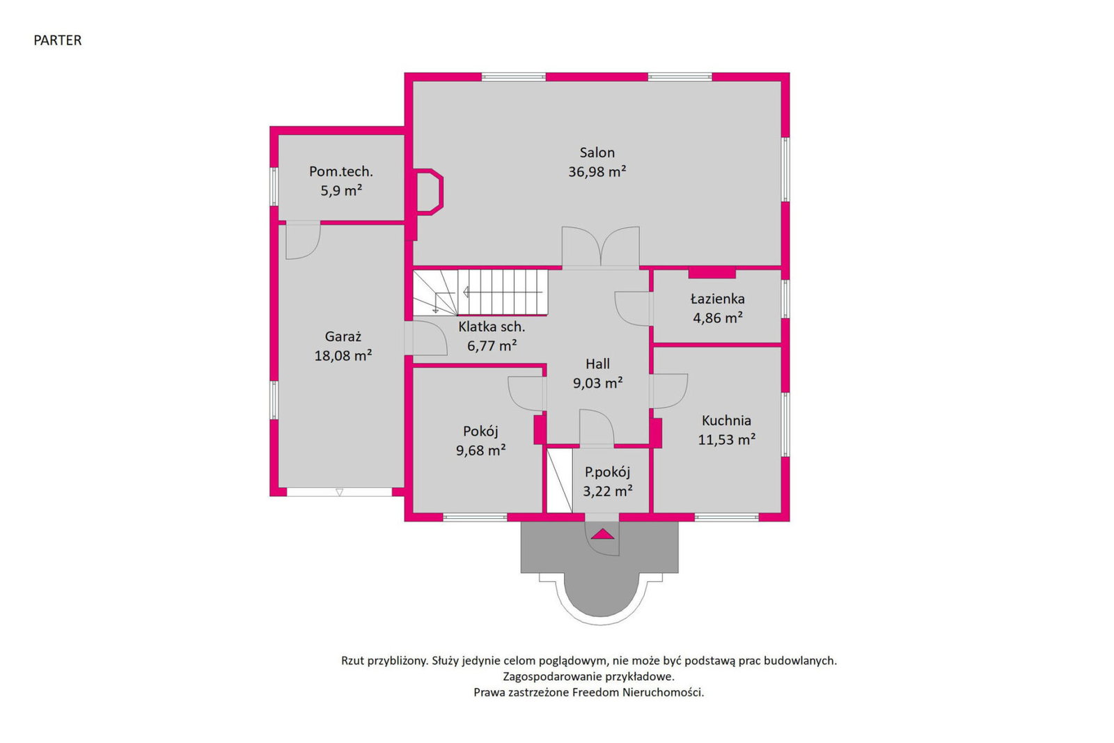- garaż o pow. 18,08 m2
