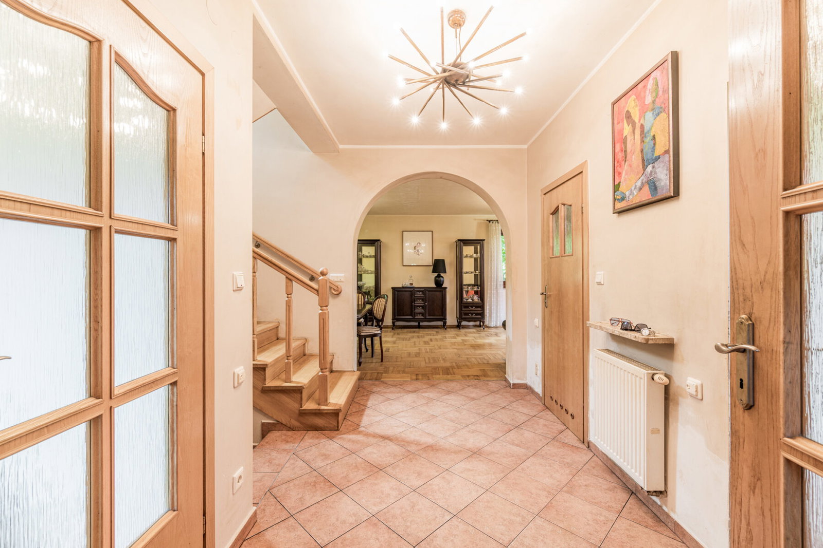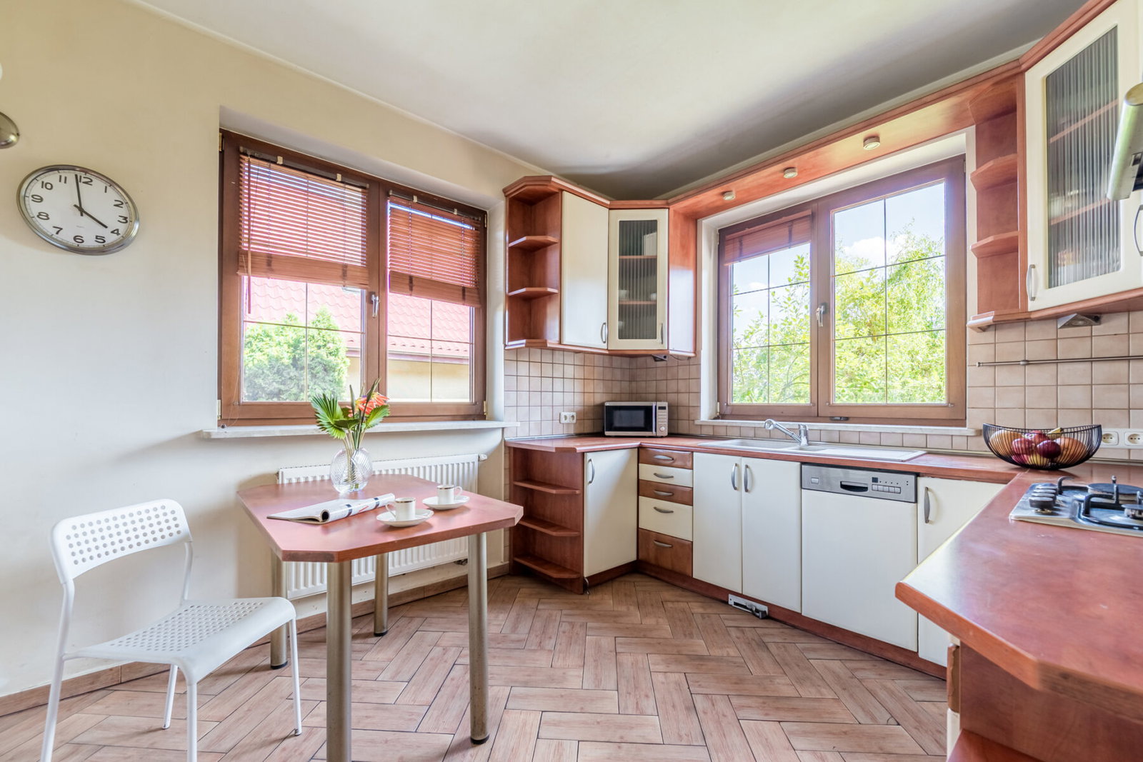 - Podłogi w pomieszczeniach: Parkiet, Terakota