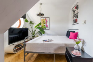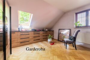 - garderoba z oknem (możliwość przywrócenia pokoju)o pow. 14,63 m2