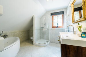 - przestronny pokój łazienkowy z wanną i prysznicem o pow. 7,97 m2