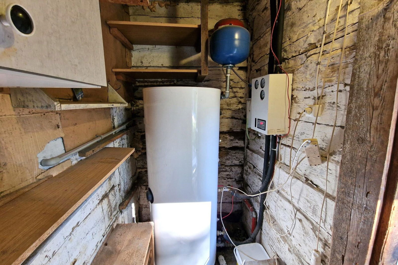 Budynek ogrzewany za pomocą pieca kaflowego. Dodatkowo w domu zainstalowana jest klimatyzacja, która zimą może służyć również do ogrzewania.