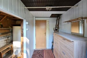 Dom ma dwa pokoje, a także przedpokój, pomieszczenie gospodarcze, łazienkę z WC oraz oddzielną kuchnię. To funkcjonalny układ, który sprawdzi się zarówno do zamieszkania, jak i jako miejsce rekreacyjne.