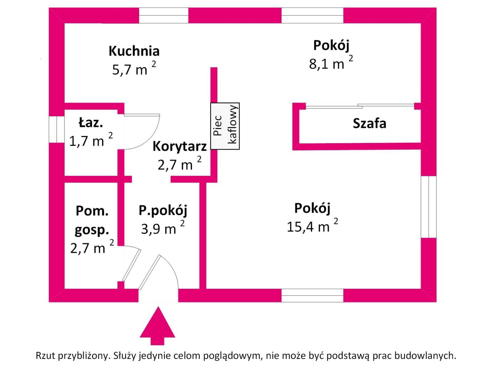 - Drzwi wejściowe: Drewniane