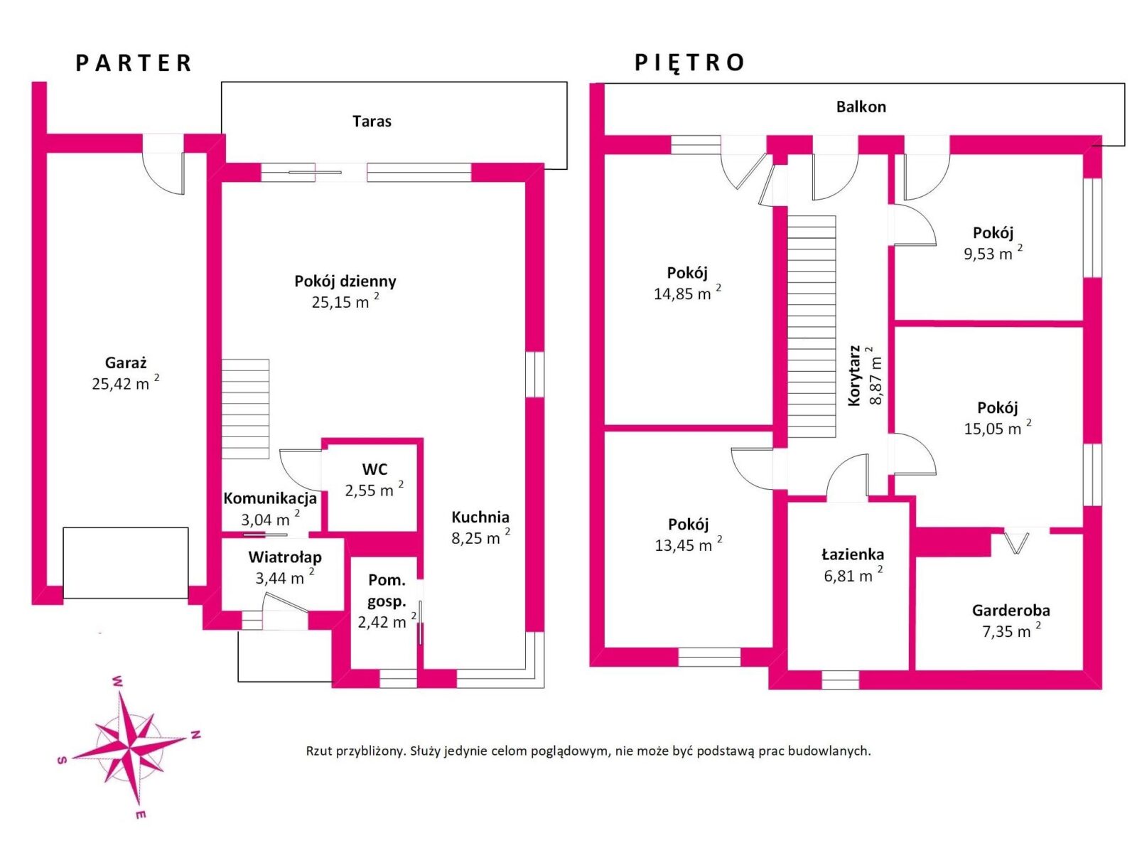 Na powierzchni domu wyróżniamy