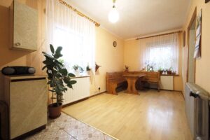 Dom ma 5 pokoi o różnych powierzchniach: 22 m², 23 m², 15 m², 22 m² i 14 m². Dodatkowo znajduje się kuchnia z wyposażeniem, łazienka oraz osobne WC.