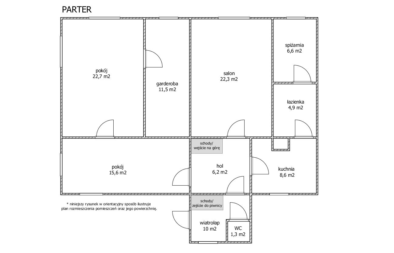 - Powierzchnie pokoi: 22, 23, 15, 22, 14