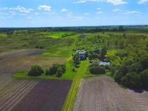 Obszar blisko 11 ha pól wraz z domem murowanym o pow. użytkowej ok. 120 m2 do generalnego remontu oraz budynkiem gospodarczym.