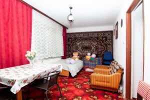 Dom z lat osiemdziesiątych wymaga generalnego remontu. Ma powierzchnię użytkową około 120 m², piętrowy układ z pięcioma sypialniami, kuchnią, łazienką i WC. Ogrzewany jest piecem CO, a w bryle budynku znajduje się garaż jednostanowiskowy.