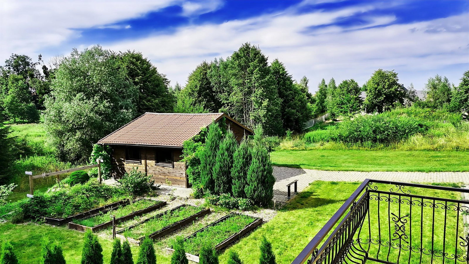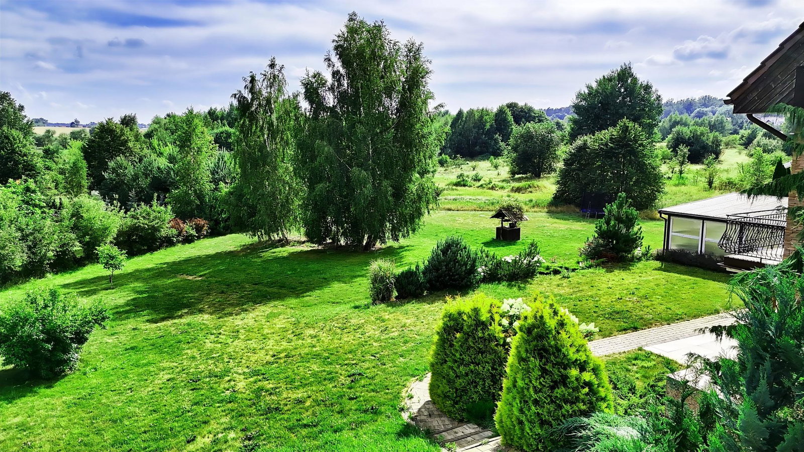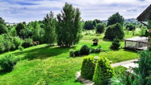 - Ogród 2828 m² z automatycznym nawadnianiem – perfekcyjny trawnik bez wysiłku