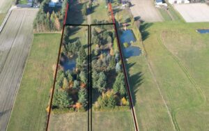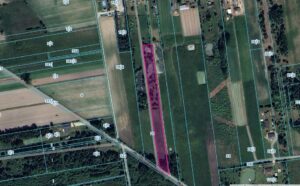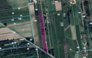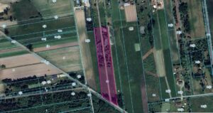 Działki mają kształt prostokąta i wymiary około 280 m na 27 m, co daje około 80 arów każda.