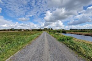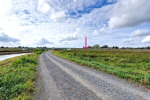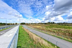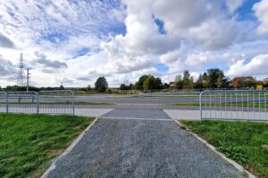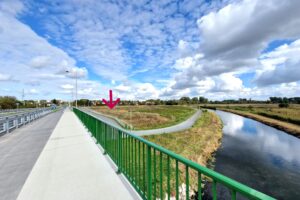 Duża łąka nad Krzną przy nowym moście i ścieżce