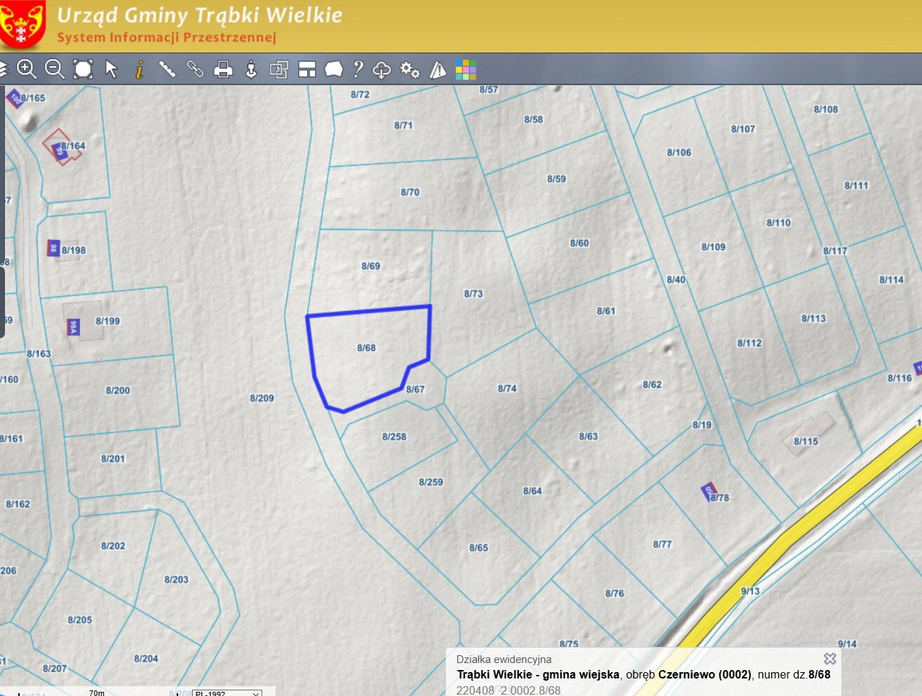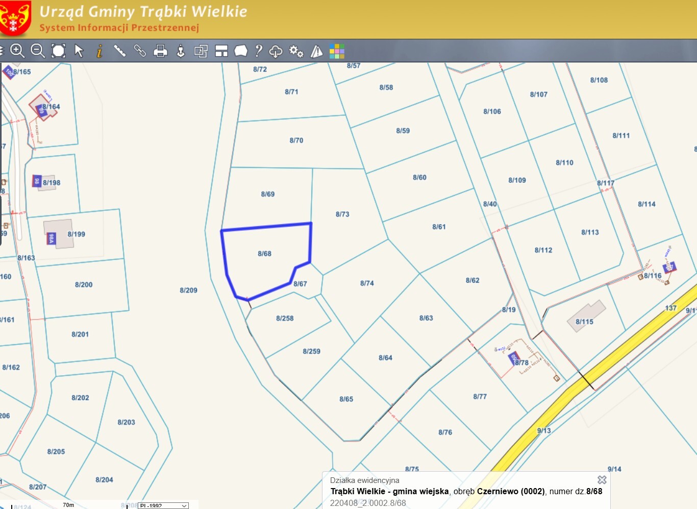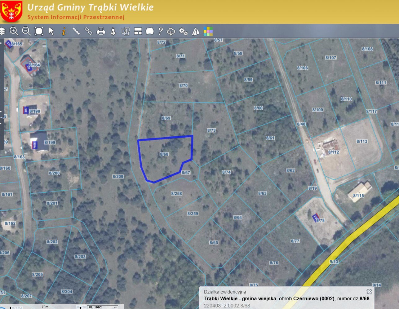 - działka budowlana - nr ewidencyjny 8/68 – powierzchnia 1 907 m2, obręb Czerniewo, gmina Trąbki Wielkie;