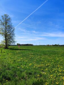 Bliskość natury: w okolicy znajdują się liczne ścieżki spacerowe pośród pól, łąk i lasów, idealne dla miłośników przyrody i aktywnego stylu życia.