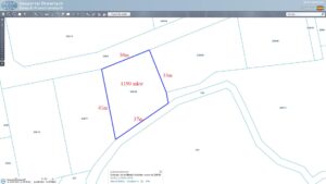 Działka ma powierzchnię 1190 m² i kształt nieregularny, zbliżony do prostokąta. Wymiary działki to 30×40 metrów.