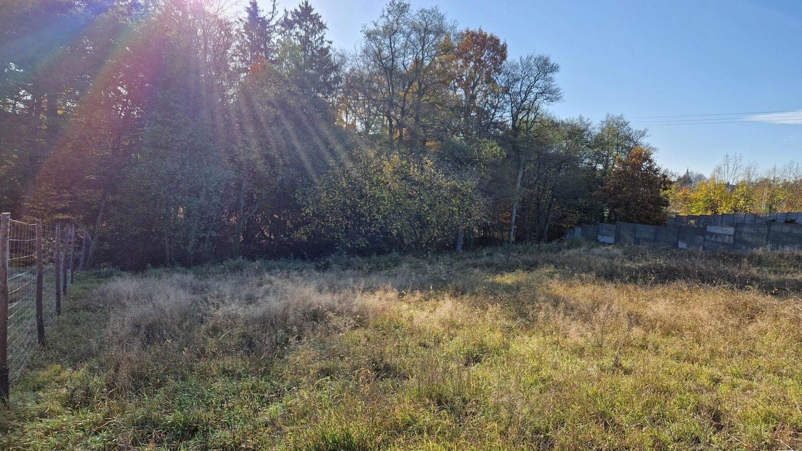 Działka o powierzchni 1190 mkw o kształcie nieregularnym, zbliżonym do prostokąta, ogrodzona siatką budowlaną. W bliskiej odległości od działki, około 80 metrów, dostępne są media miejskie tj. woda i kanalizacja. Natomiast sieć energetyczna jest już zaprojektowana i wkrótce będzie fazie wykonania.