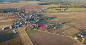 Działka ma dobry dojazd drogą asfaltową, co zapewnia wygodny dostęp do pobliskich miejscowości, w tym Nidzicy, oddalonej o 6 km.