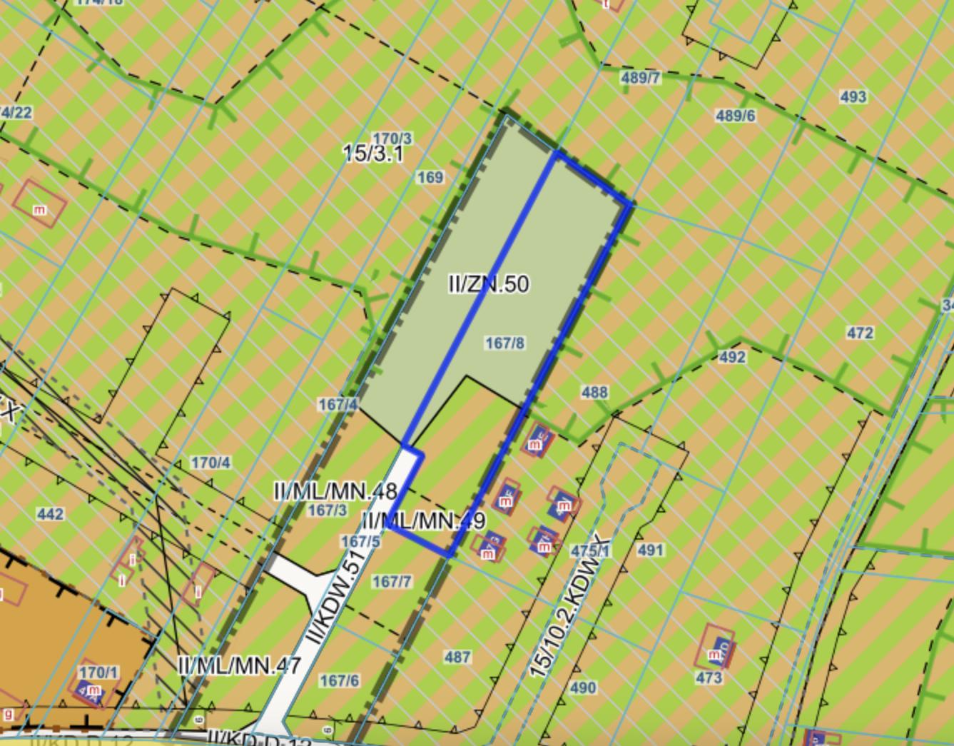 Teren działki objęty MPZP , oznaczony symbolem II/ML/MN.49 oraz w części II/ZN.50