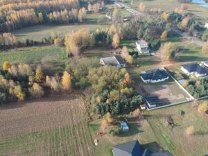 W pobliżu działki znajdziesz wiele udogodnień, takich jak hala sportowa, przedszkole, las, apteka, bazarek, szkoła, sklep, kościół, park, plac zabaw oraz jezioro. To świetne miejsce dla rodzin szukających spokoju i bliskości natury.