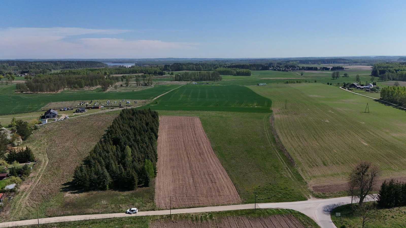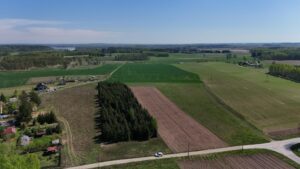 W pobliżu działek znajdziesz sklep spożywczy, kościół, boisko sportowe oraz tereny rekreacyjne. Dodatkowo, w zasięgu spaceru znajdują się jeziora, takie jak Jezioro Dobskie i Jezioro Kisajno, idealne do wypoczynku i aktywności na świeżym powietrzu.