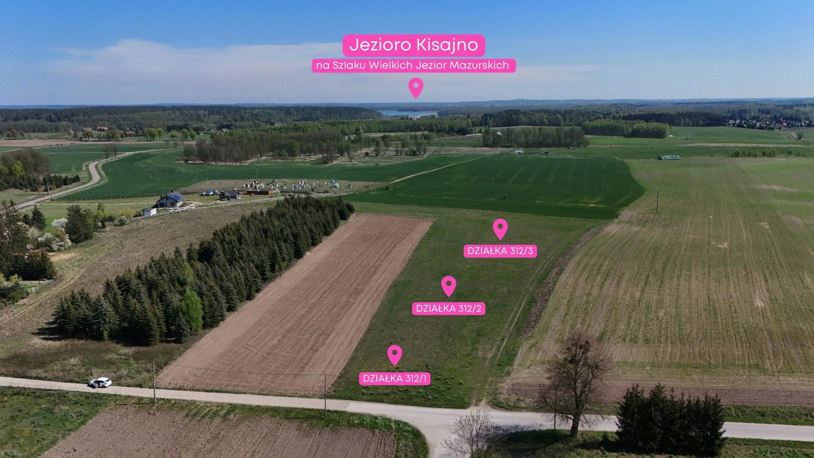 Zaledwie 9 km od centrum Giżycka, w sercu Krainy Wielkich Jezior Mazurskich, czekają na Ciebie trzy atrakcyjne działki - w miejscu, gdzie sielskie krajobrazy łączą się z nowoczesnym budownictwem i aktywnym stylem życia.
