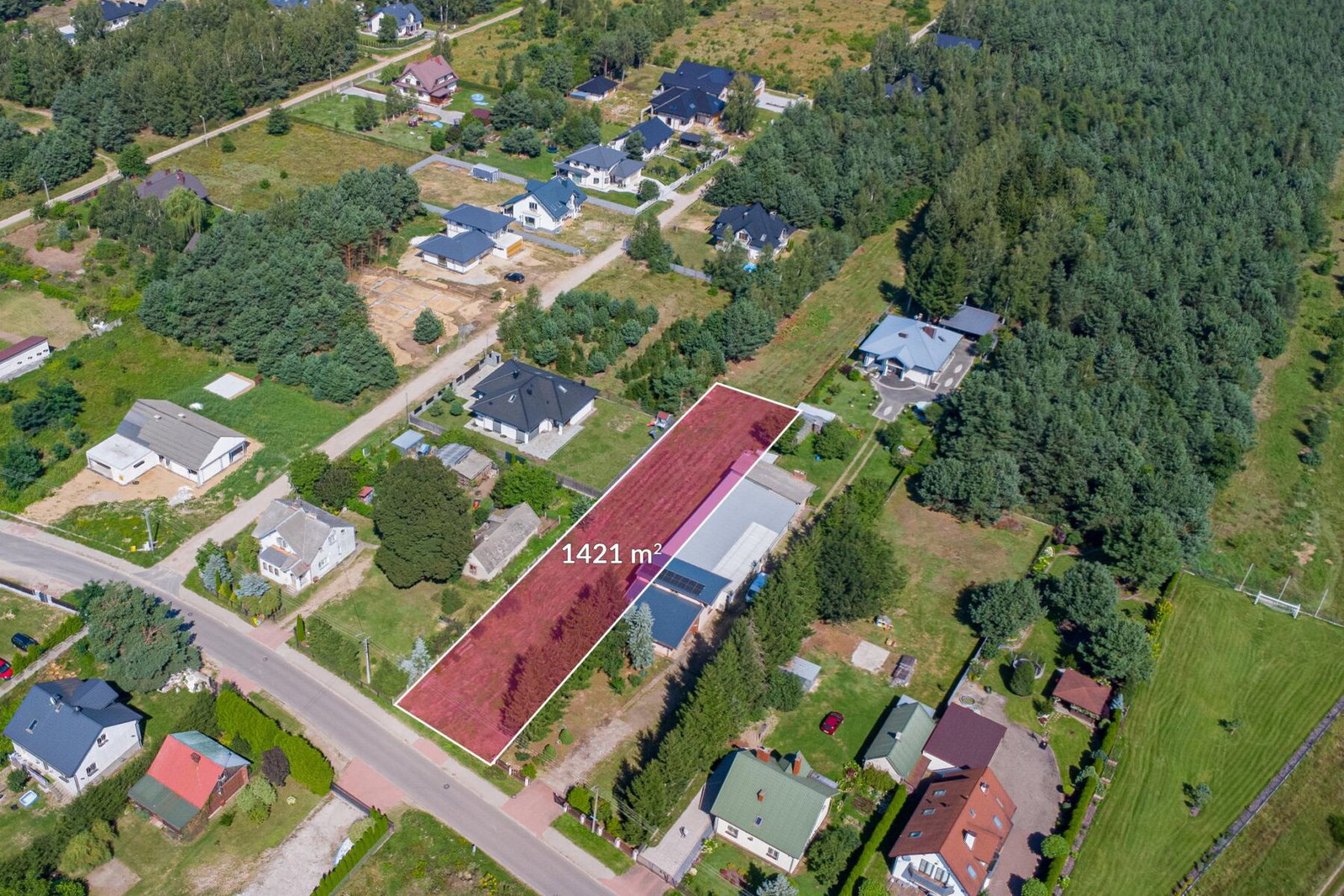 Działka ma powierzchnię 1421 m² i ma prostokątny kształt, co ułatwia planowanie zabudowy.