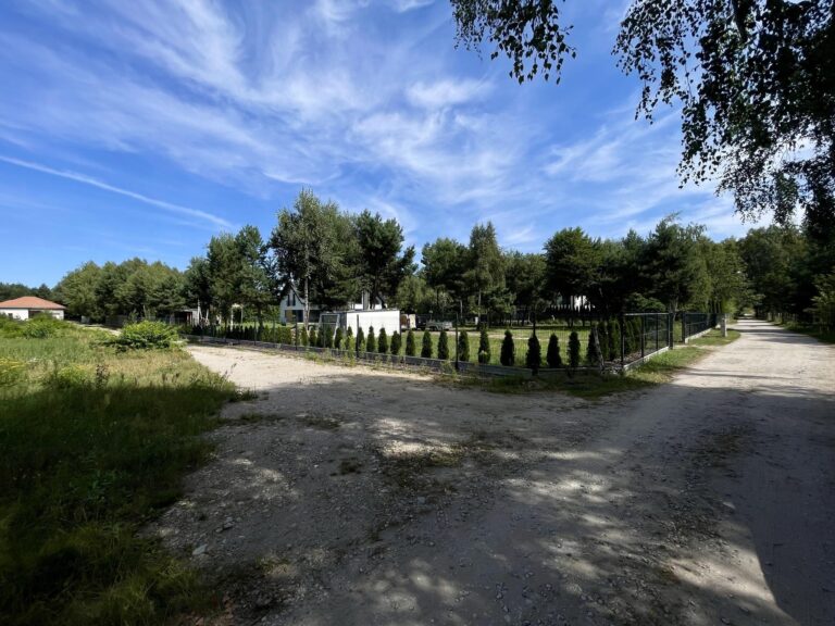 Działka ma powierzchnię 1500 m² i ma nieregularny kształt. Ukształtowanie terenu jest płaskie, co może ułatwić planowanie zabudowy.