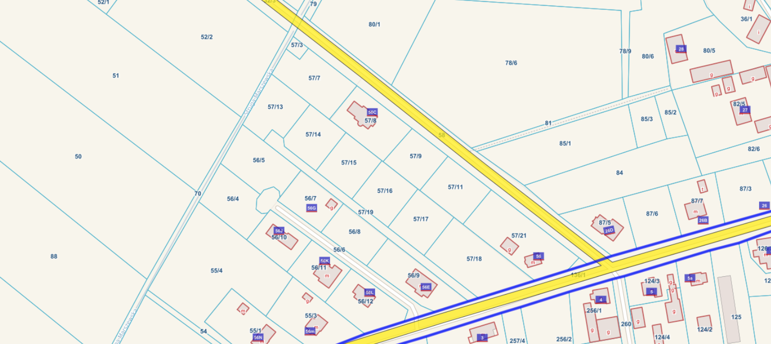 Do działek prowadzi droga wewnętrzna ( 57/19 ) w której nabywcy będą mieli udziały.