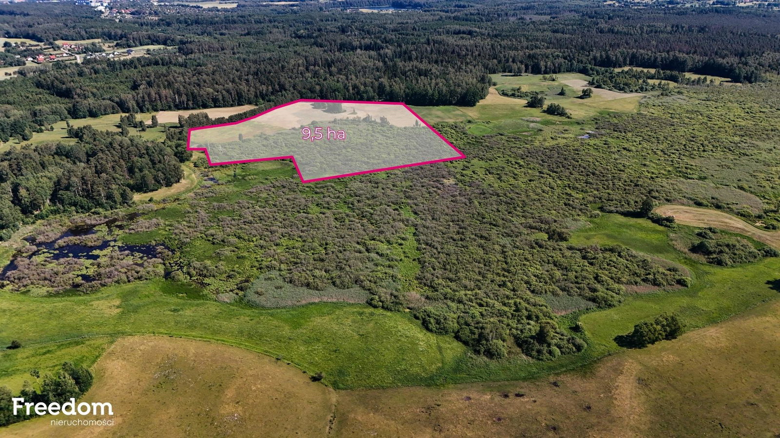 Na sprzedaż unikalna działka o powierzchni 9,5 ha, położona w malowniczej i cichej okolicy, otoczona lasami i łąkami. Teren idealny zarówno do celów rekreacyjnych, jak i inwestycyjnych.