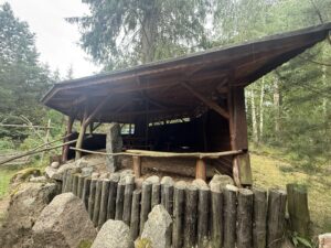 • Duża drewniana wiata grillowa z kamiennym grillem i wędzarnią