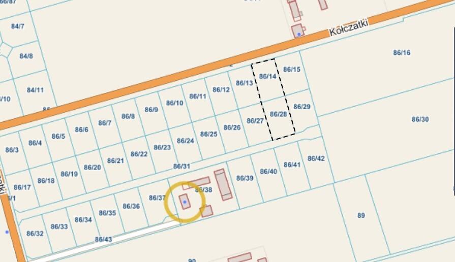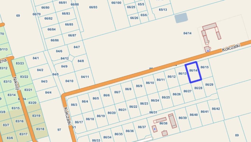 - Numer działki: np. 86/14, 86/28 (dostępnych więcej działek)