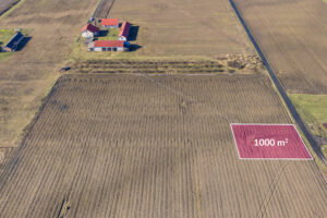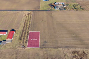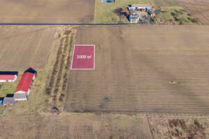 Każda działka ma powierzchnię 1000 m² i regularny kształt prostokątny, o wymiarach około 41 m x 25 m. To idealne warunki pod zabudowę.