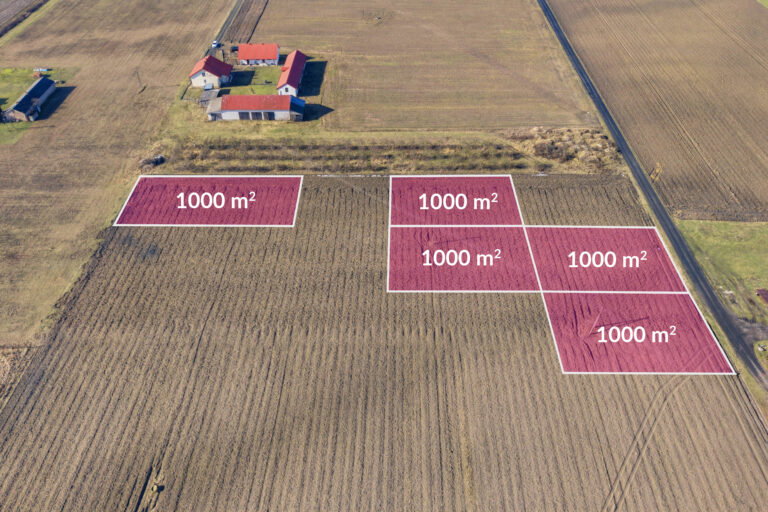 - Potencjał podziałowy: Duża powierzchnia (1,41 ha) i minimalna wielkość nowej działki (1000 m²)