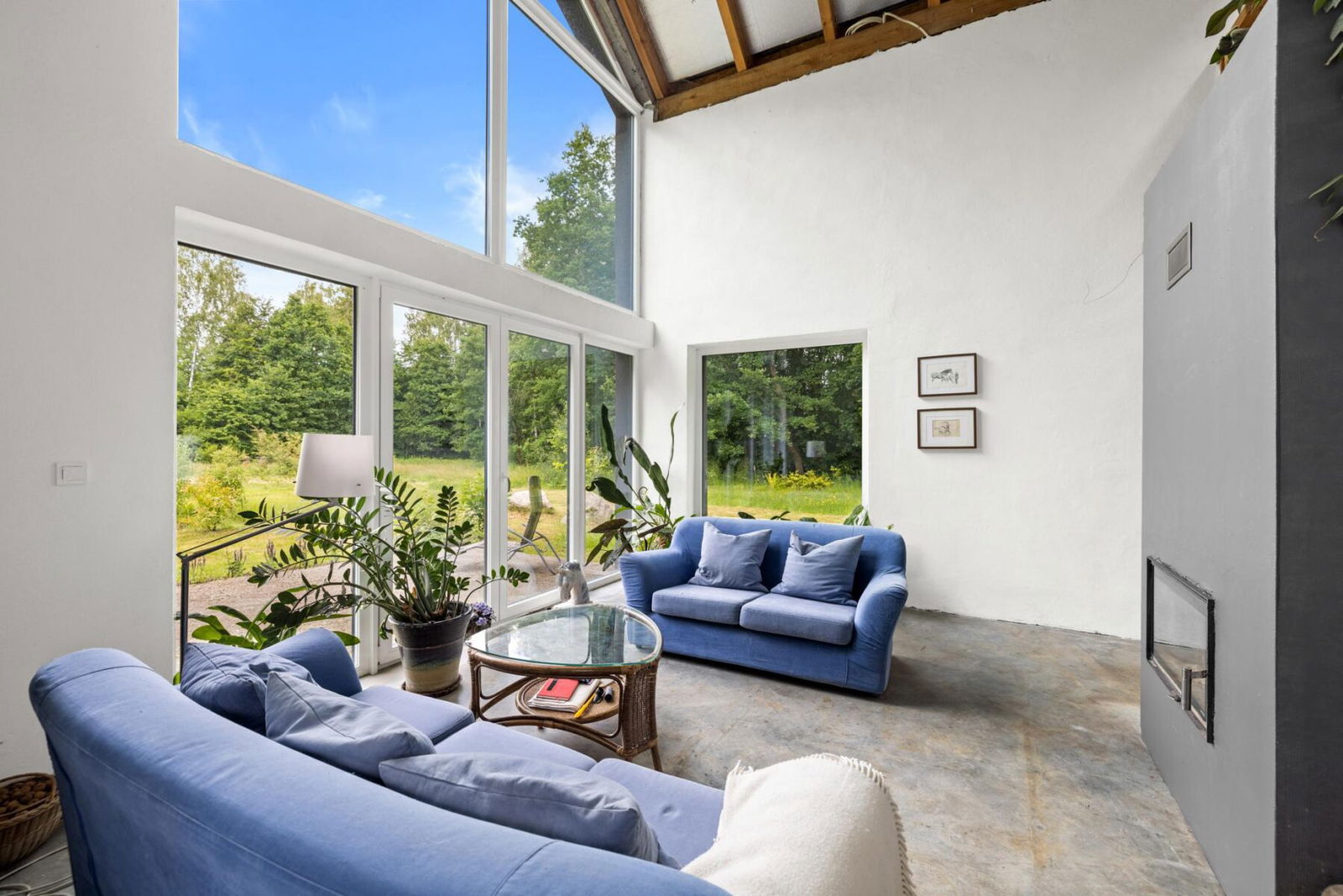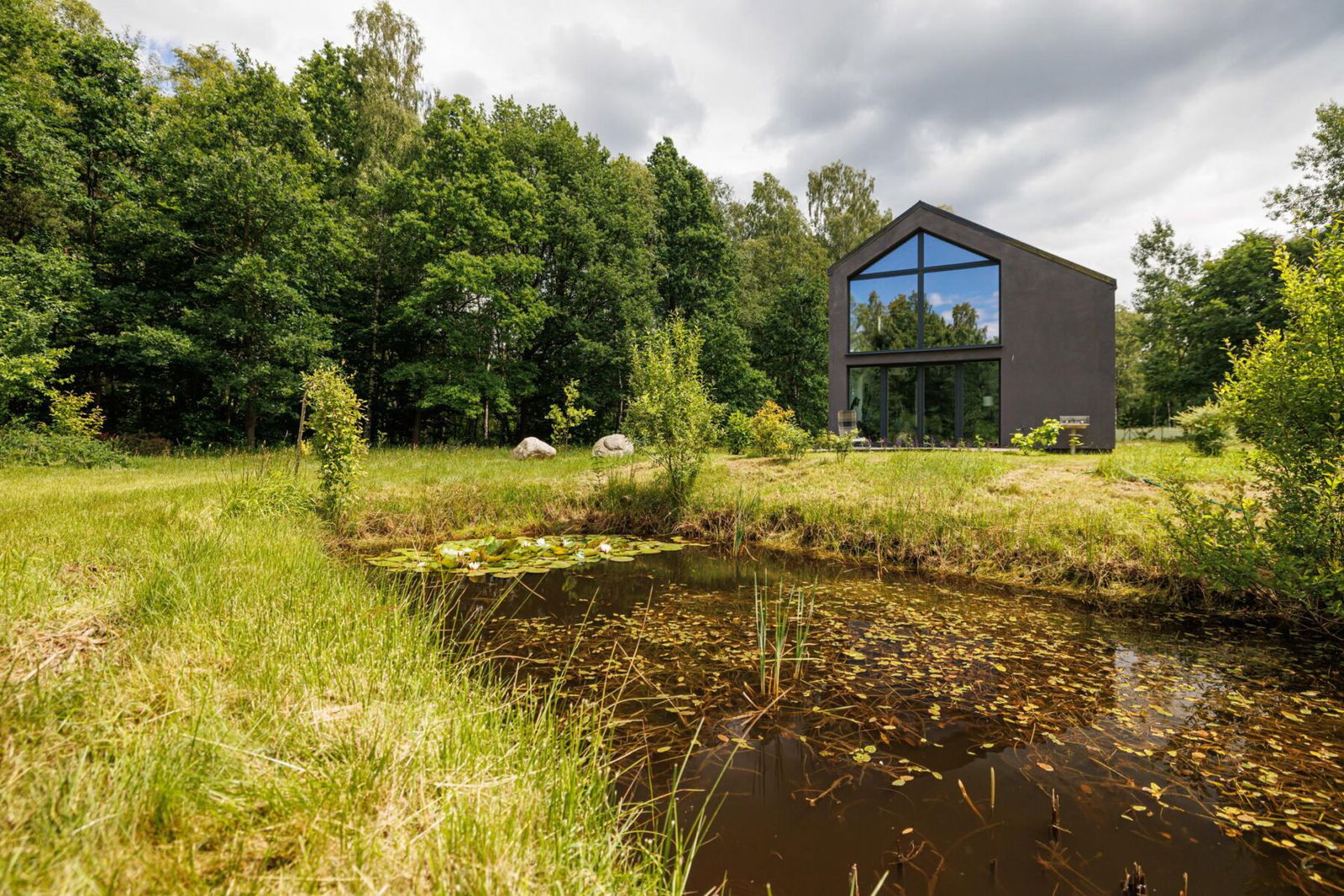 Budynek o powierzchni całkowitej 128,5 m2 został zaprojektowany z myślą o komforcie mieszkańców, z dużymi przeszkleniami, które wpuszczają mnóstwo naturalnego światła i pozwalają cieszyć się widokiem na otaczający krajobraz.