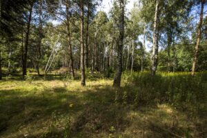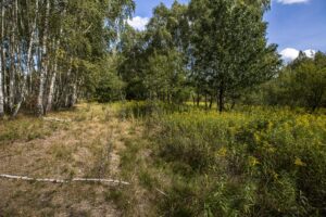 Około 60 arów porasta zróżnicowany drzewostan – głównie brzozy i sosny – tworząc naturalny mikroklimat i dając możliwość stworzenia prywatnej strefy relaksu, ogrodu leśnego lub miejsca na domek rekreacyjny.