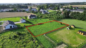 Na działce można postawić dom jednorodzinny, garaż oraz budynek gospodarczy do 50 m². Możliwości zabudowy są elastyczne, a maksymalna wysokość budynków to dwie kondygnacje, w tym poddasze użytkowe. Powierzchnia zabudowy nie może przekroczyć 30% działki, co pozwala na stworzenie przestrzeni na ogród czy rekreację.