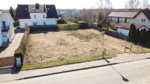 Działka jest częściowo ogrodzona: z trzech stron siatką oraz krzewami, natomiast od frontu jest wymurowany fundament (po wcześniejszym ogrodzeniu), który można wykorzystać pod nowe ogrodzenie.