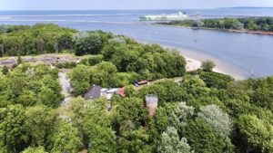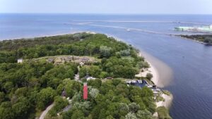 - Zaledwie około 50 kroków od ujścia Świny, gdzie można obserwować przepływające kontenerowce, promy i jednostki pływające