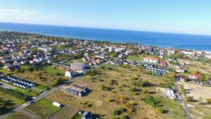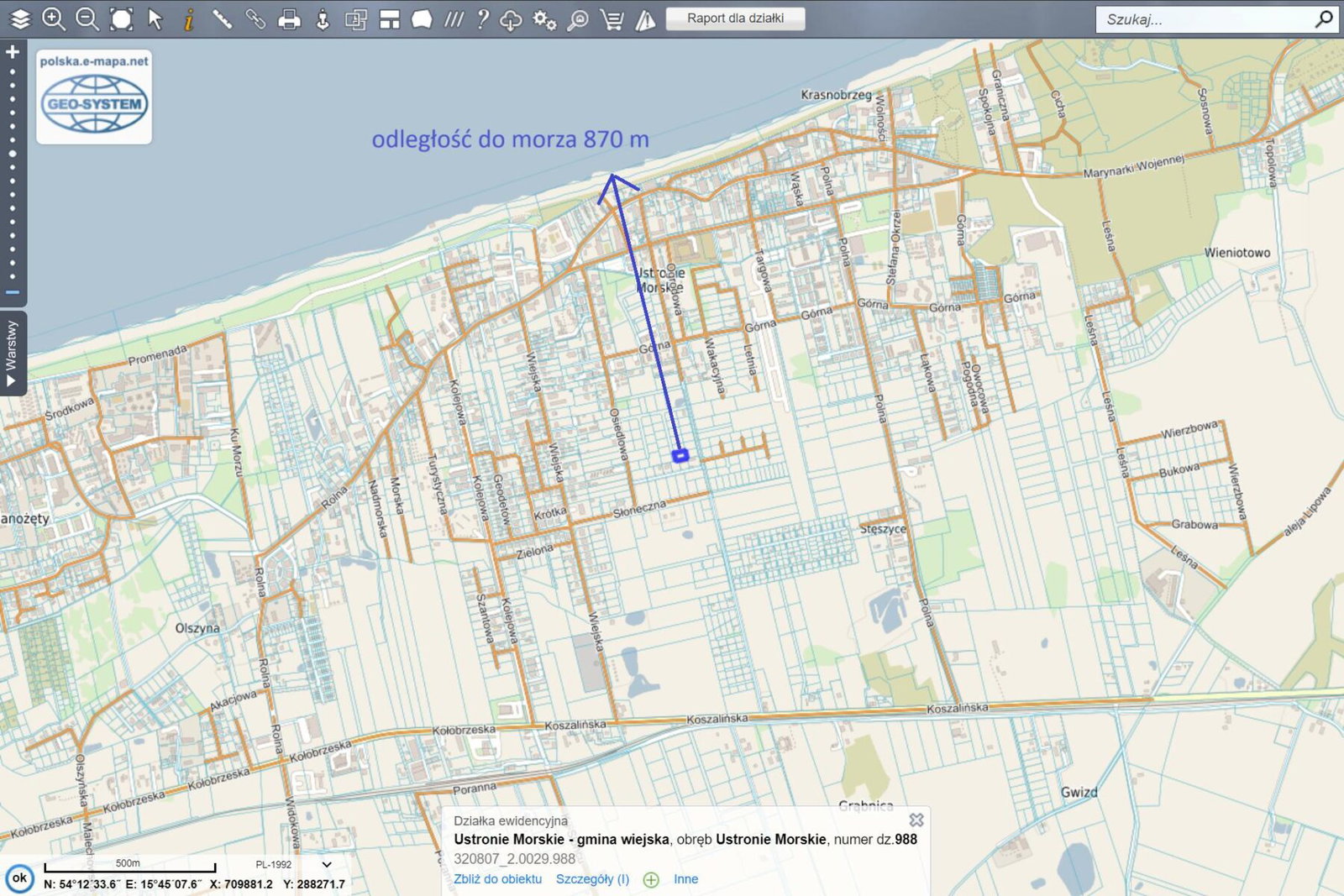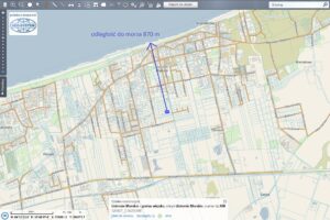 Działka budowlana położona w obrębie centrum nadmorskiej miejscowości Ustronie Morskie w odległości około 870 m od morza.