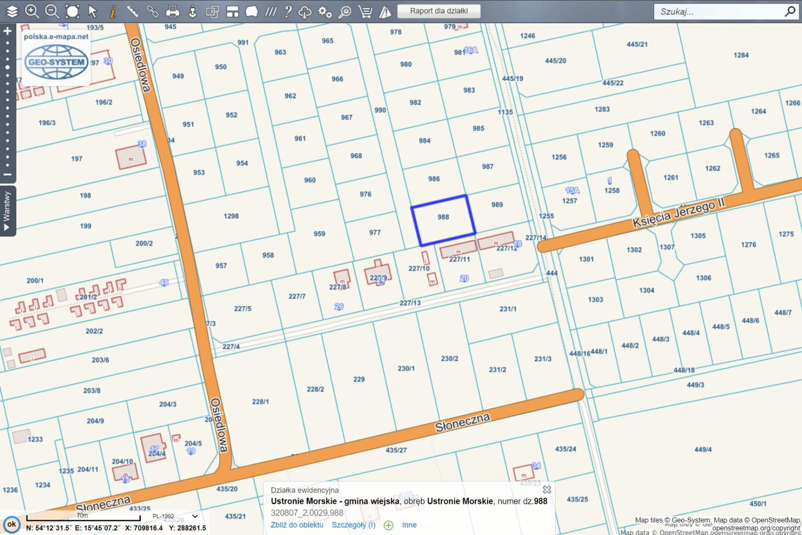 Sprzedaż dotyczy działki budowlanej o pow. 850 m2 położonej w sąsiedztwie ul. Bogusława XIV, Osiedlowej, oraz Słonecznej z możliwością dokupienia sąsiednich działek.