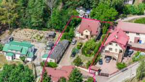 Działka zabudowana 2 domami wolnostojącymi oraz budynkiem gospodarczym.
