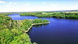 - Jezioro Jaśkowskie (150 ha) z uroczą wyspą,