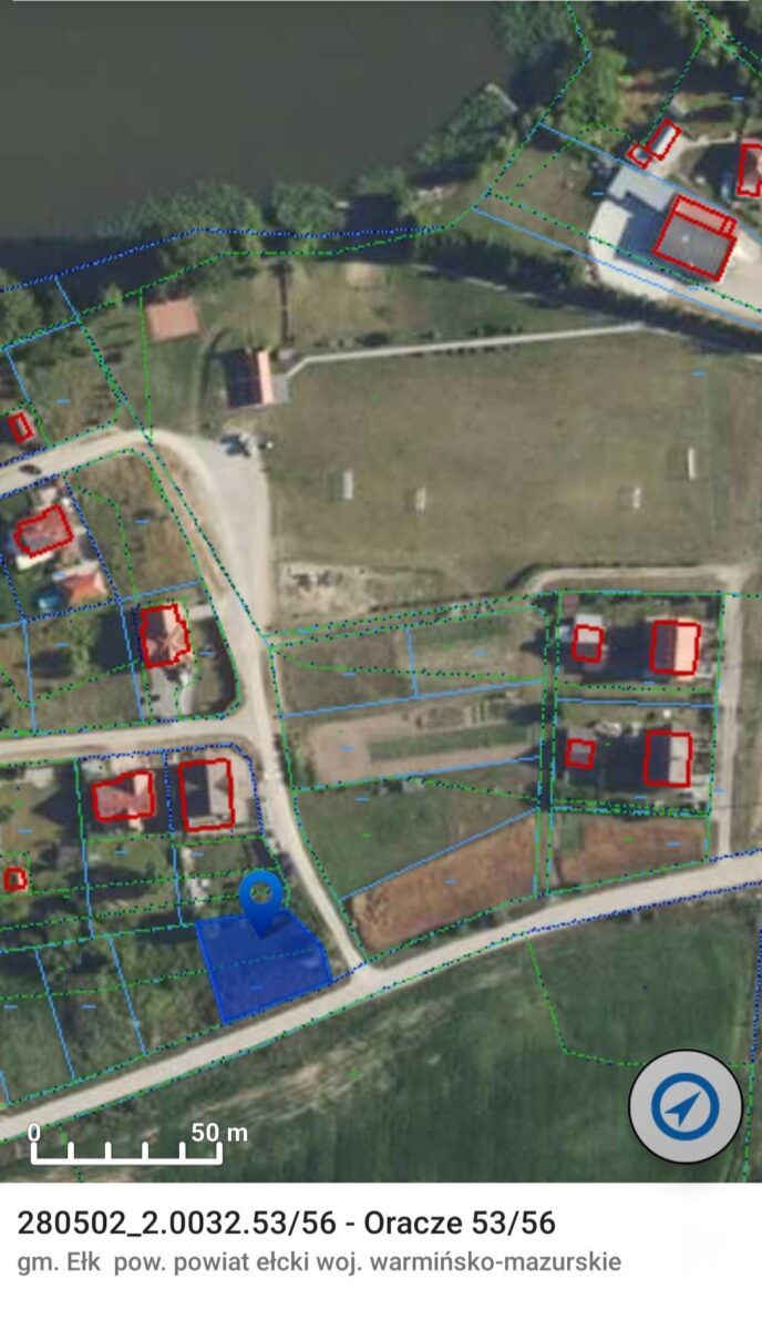 Na sprzedaż niewielka działka rolno-budowlana o pow. 715 m² (nr ewid. 53/56), położona we wsi Wityny, obręb Oracze, zaledwie 3 km od Ełku.