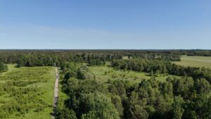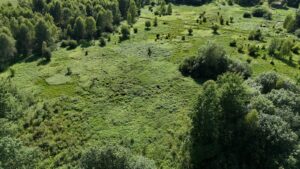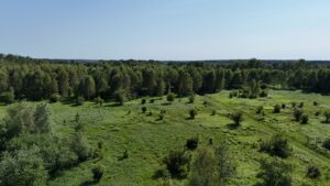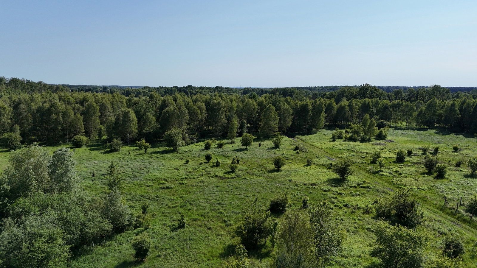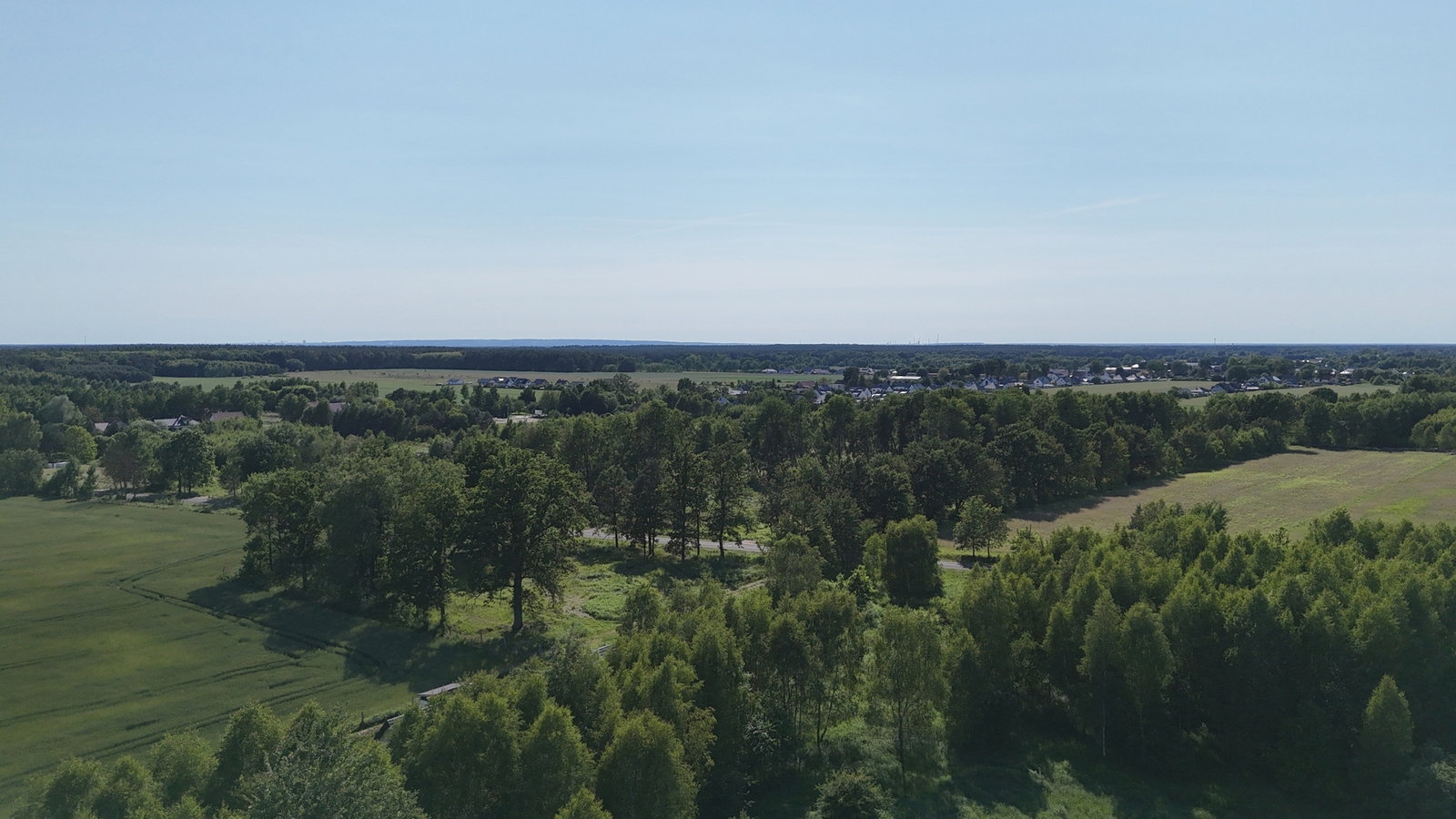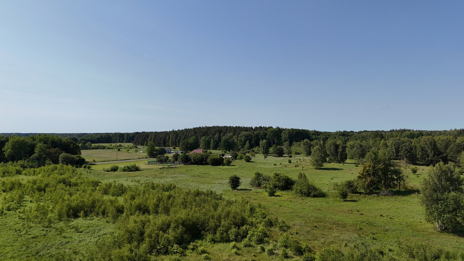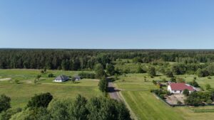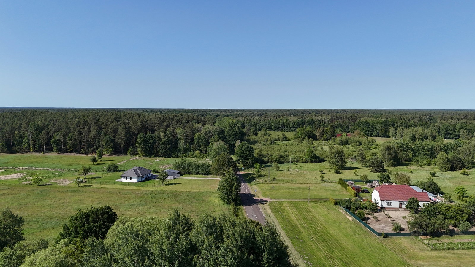 - Teren płaski, graniczący bezpośrednio z lasem – idealny do stworzenia kameralnego miejsca do życia