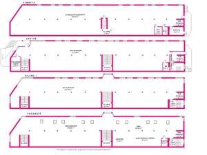 - trzy klatki schodowe oraz winda towarowa,