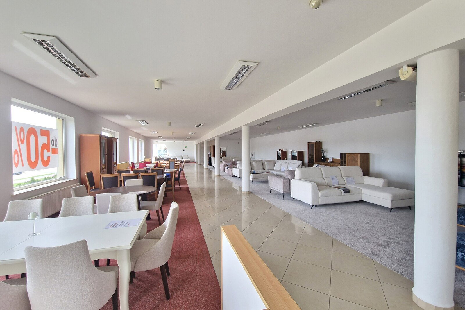 - konstrukcja z porothermu, stropy z płyty żerańskiej, okna PCV, witryny i drzwi aluminiowe,