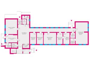 Budynek ma powierzchnię 503 m2 i znajduje się na dużej działce o powierzchni 66,42 ar. Posiada prawomocne pozwolenie na budowę oraz zmianę funkcji, co daje możliwość przekształcenia go w obiekt usługowy pomocy społecznej lub inne rodzaje usług.