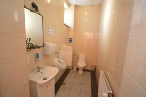 Na piętrze jest toaleta oraz pomieszczenie socjalne, istnieje możliwość wynajmu magazynku,